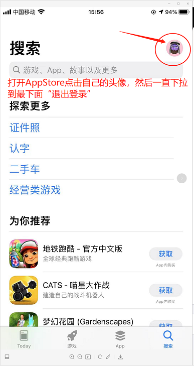 2. 操作方法:退出商店(App Store)ID(您的id),打开App Store > 点击头像 > 拉到最下面,点击退出登录