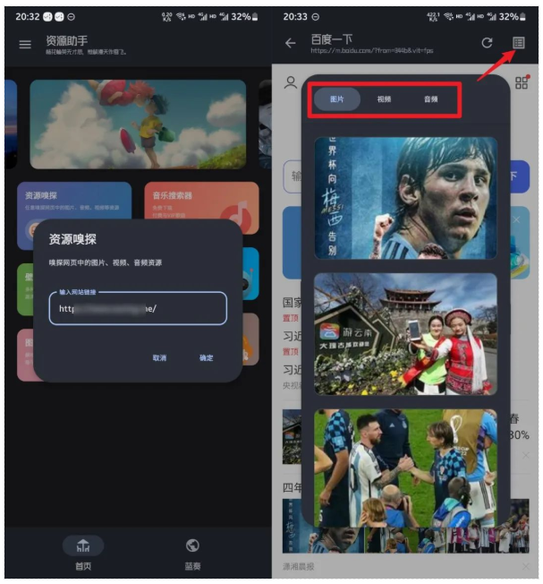软件主界面如上图所示所有功能全部显示在首页中哦现在有很多的网站不提供视频/图片/音频的下载的使用资源嗅探就可以突破限制如下图所示这里我就随便填写了一个网站就可以轻松获取到该网站的所有图片/视频/音频文件