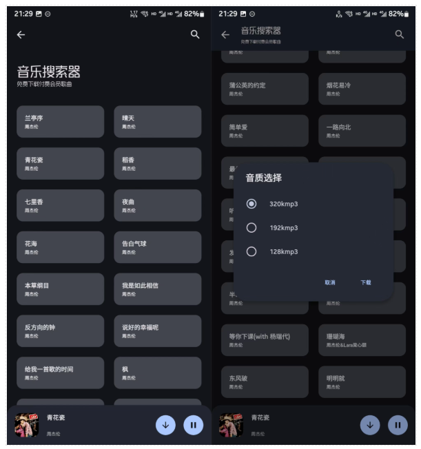 有很多小伙伴经常在后台私信留言让推荐安卓端音乐下载软件该软件中也是内置了音乐下载功能的哈这里还是以周董音乐为例全部都是免费试听和下载的哦不存在任何的限制