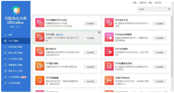 万彩办公大师是一个办公小工具合集软件,大小只有12兆,无需安装,也不用注册登录,打开就可以直接使用!内含PDF工具集、格式转换工具集、图片处理工具集等等超60+的办公小工具。